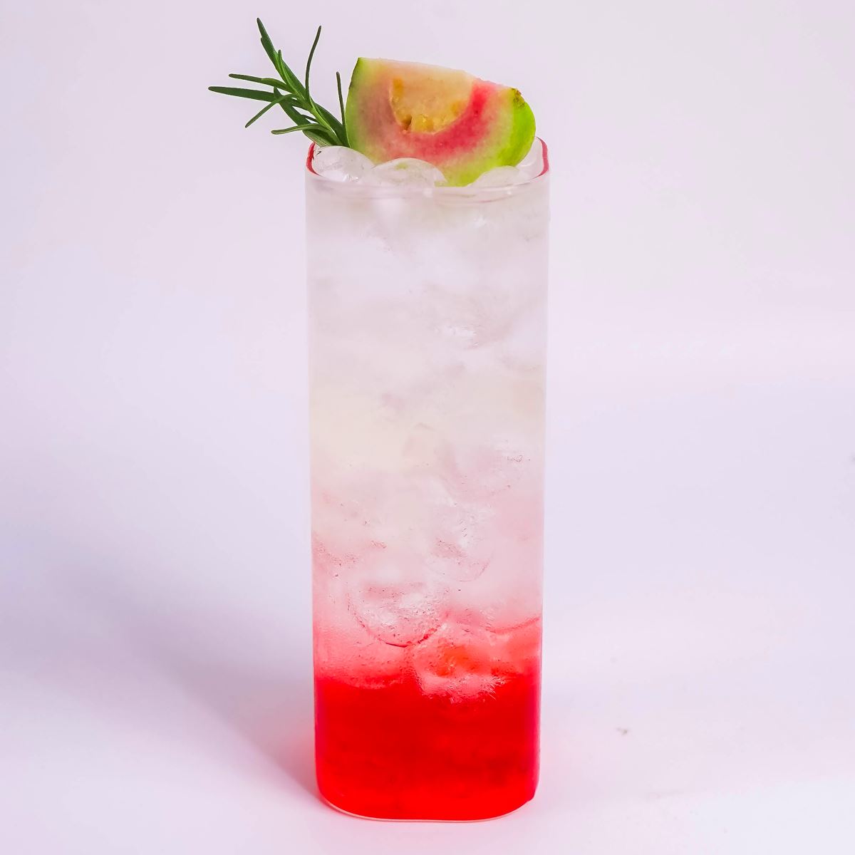 1. Cho siro dâu, siro ổi hồng và nước đường vào ly.